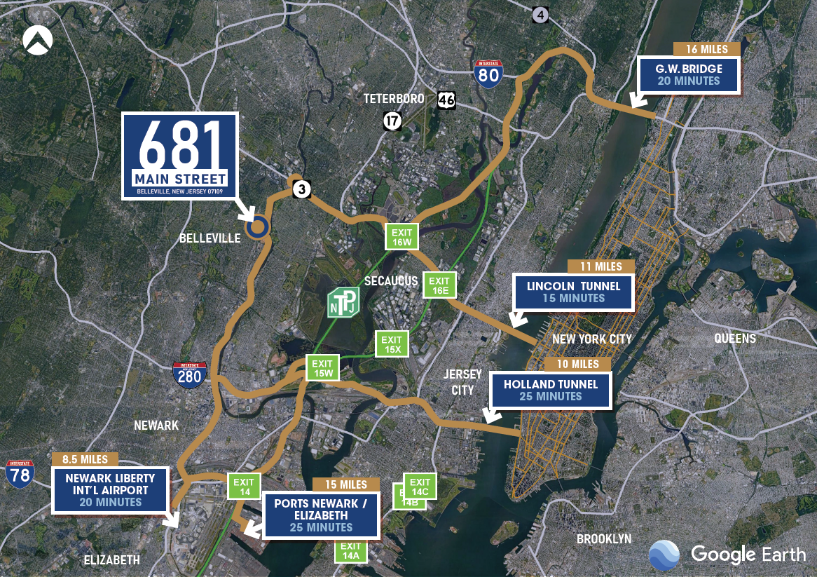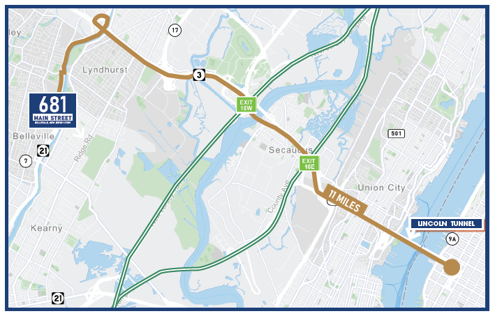 • 11 miles / 15 minutes to the Lincoln Tunnel